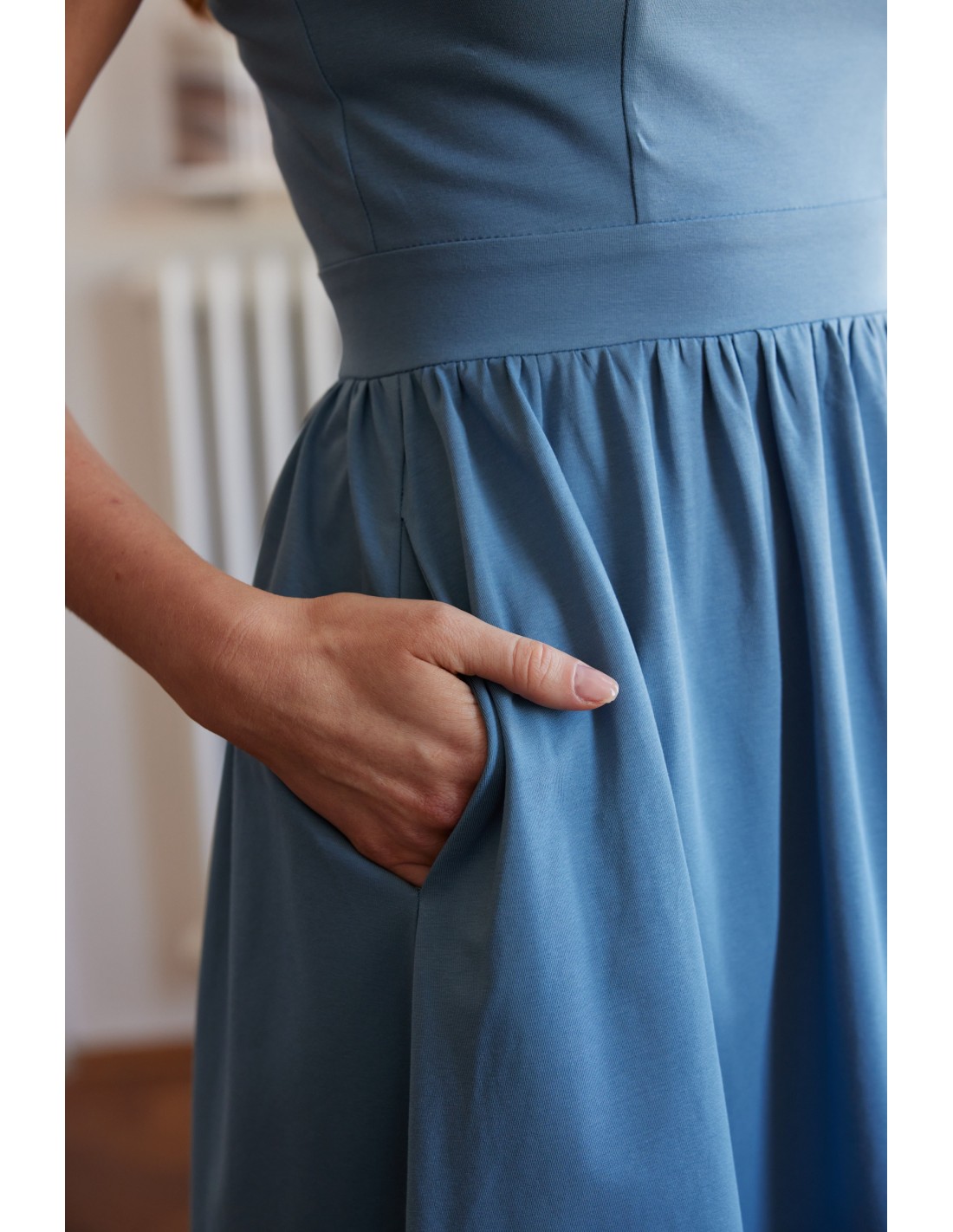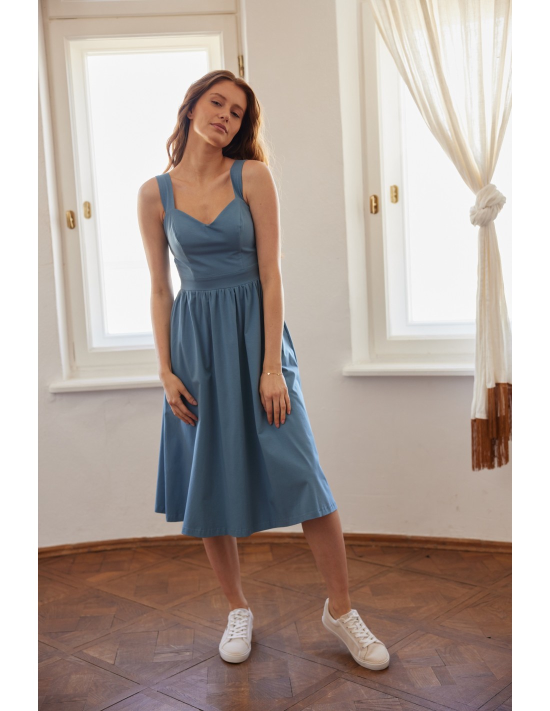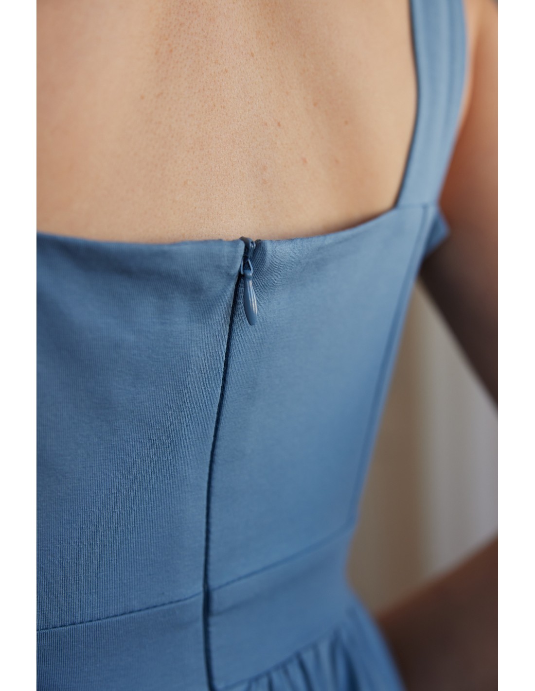 Górna część sukienki uszyta jest z podwójnej warstwy materiału.