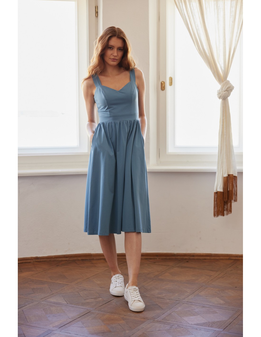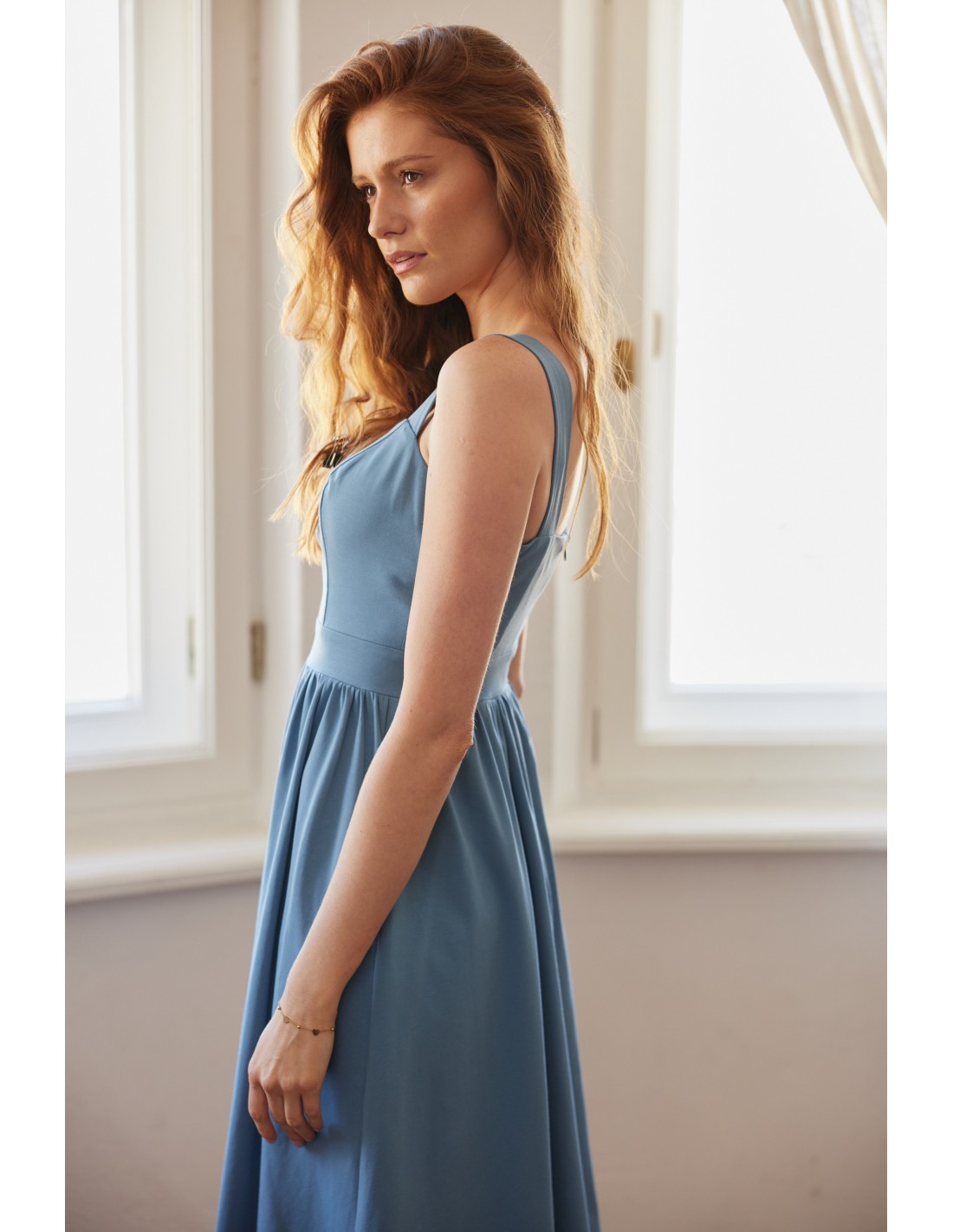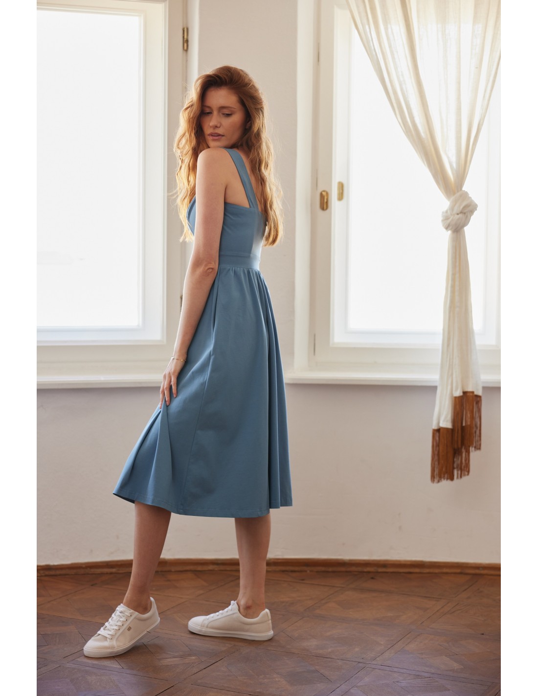 Górna część sukienki uszyta jest z podwójnej warstwy materiału.