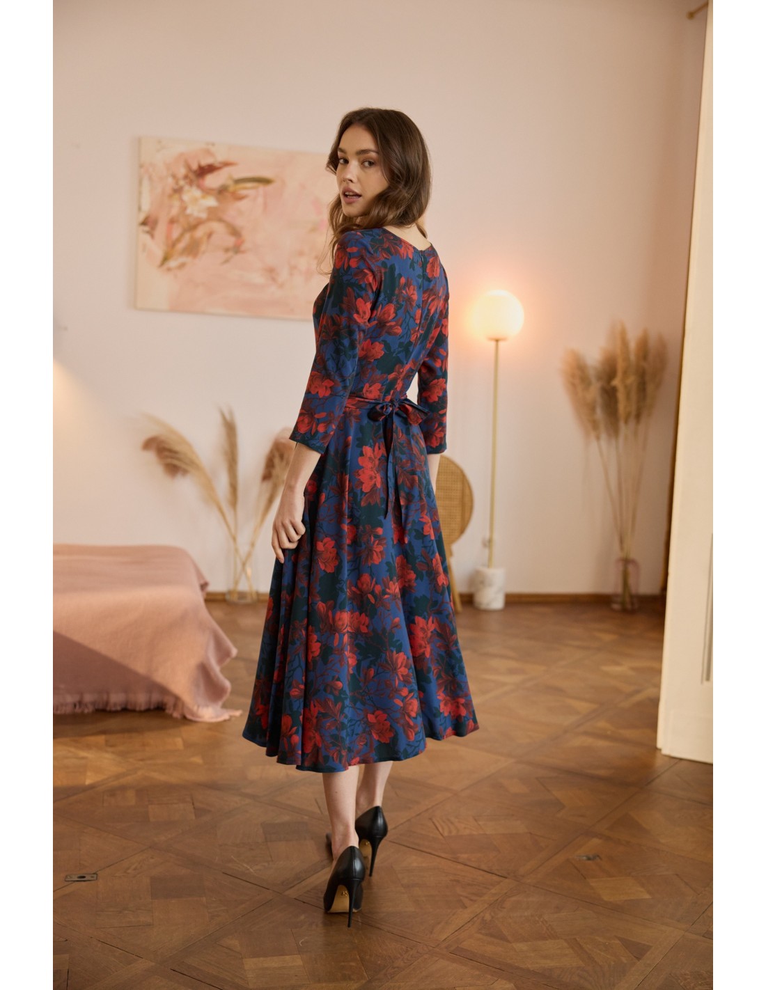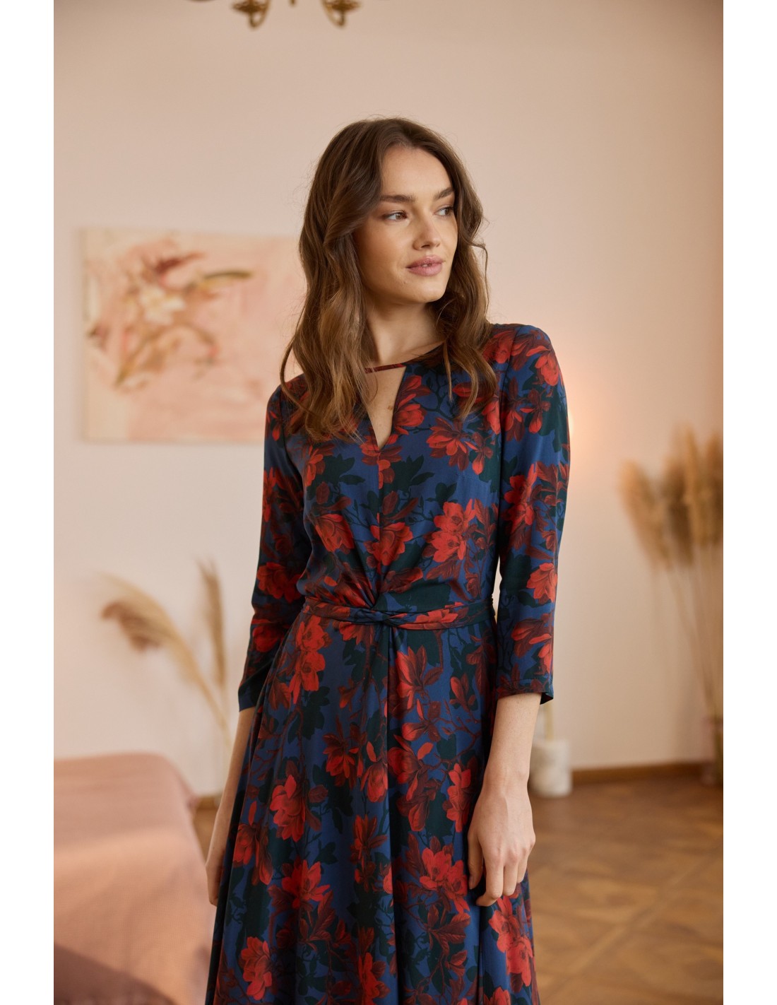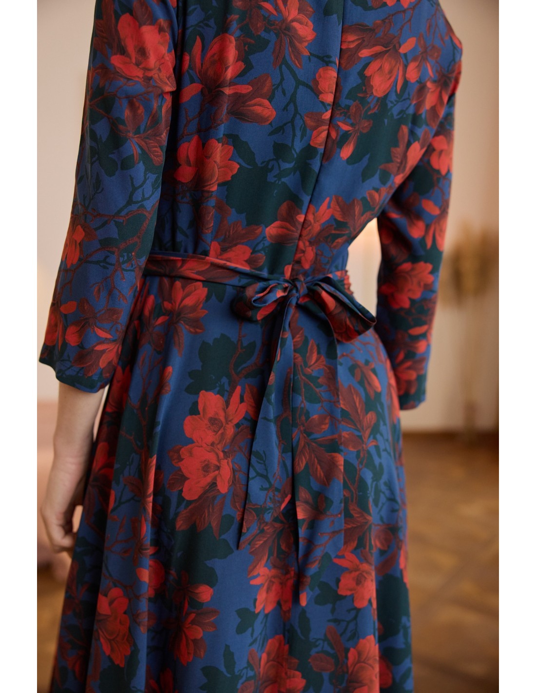 To projekt, z którego jestem niezwykle dumna. Sukienka została stworzona z myślą o tym, byś przyciągała każde spojrzenie, a jej konstrukcja doskonale podkreśla sylwetkę, subtelnie ją opływając. Ta sukienka kryje w sobie wiele wyjątkowych rozwiązań: wyjątkowy dekolt, elegancką długość rękawa, wygodny suwak z tyłu.
