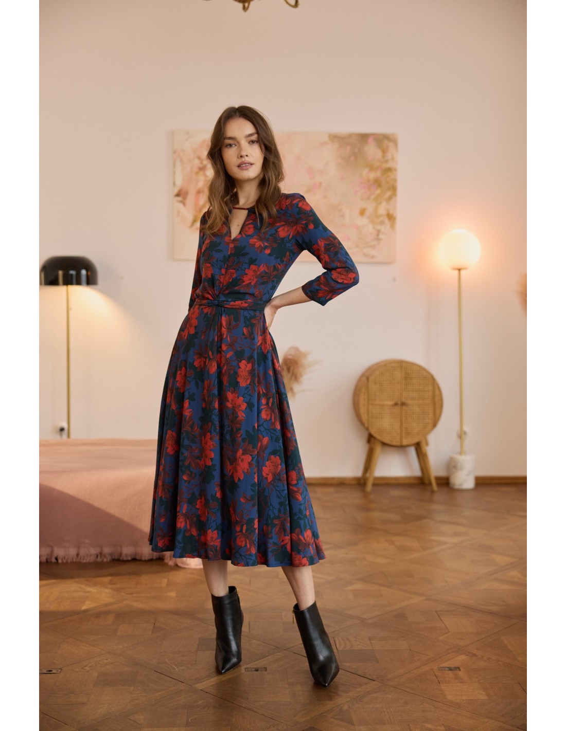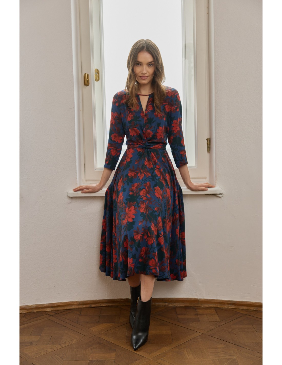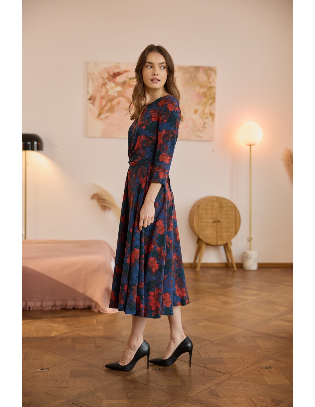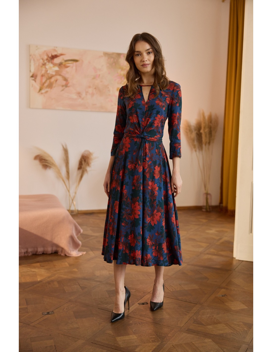 To projekt, z którego jestem niezwykle dumna. Sukienka została stworzona z myślą o tym, byś przyciągała każde spojrzenie, a jej konstrukcja doskonale podkreśla sylwetkę, subtelnie ją opływając. Ta sukienka kryje w sobie wiele wyjątkowych rozwiązań: wyjątkowy dekolt, elegancką długość rękawa, wygodny suwak z tyłu.
