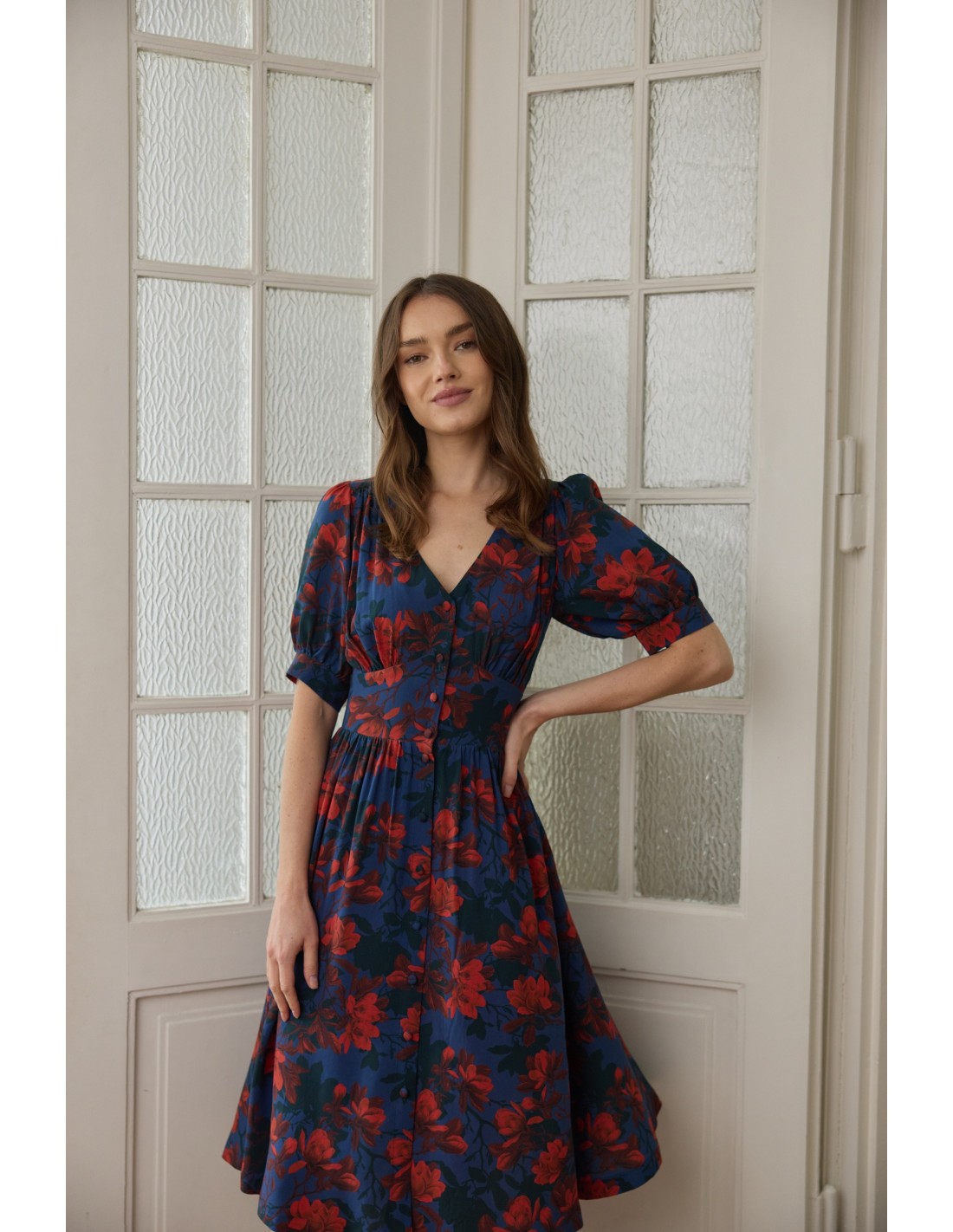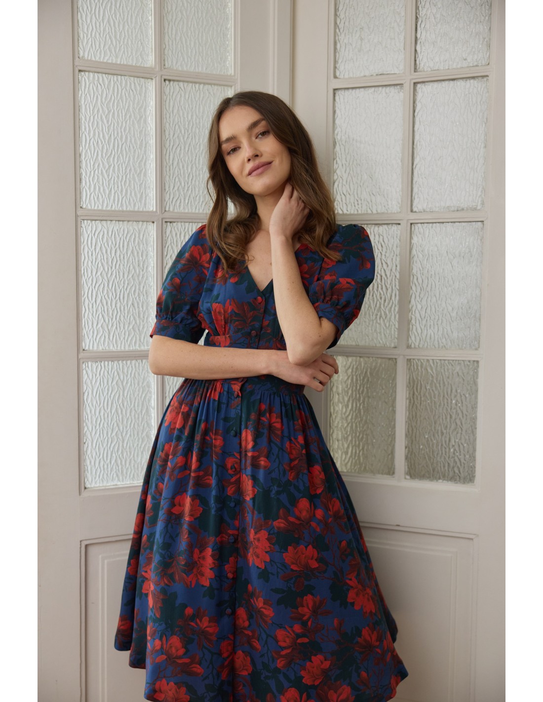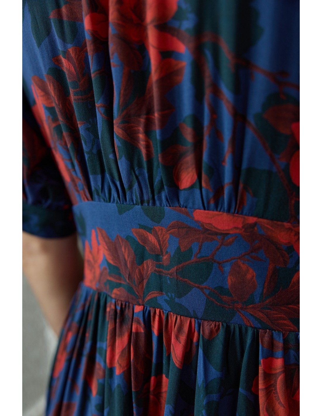 Wyobraź sobie miękką wiskozę ECOVERO, która otula Twoje ciało – zupełnie jak delikatne płatki kwiatów. Będziesz oczarowana, jak optycznie wydłuża ona szyję, zaznacza talię i podkreśla biust oraz biodra. Oblekane guziki, którymi możesz regulować głębokość rozporka, na pewno przykują niejedno spojrzenie. Kobiecy fason, wysoka jakość certyfikowanej tkaniny oraz piękne wykonanie sprawią, że pokochasz ją od pierwszego założenia!