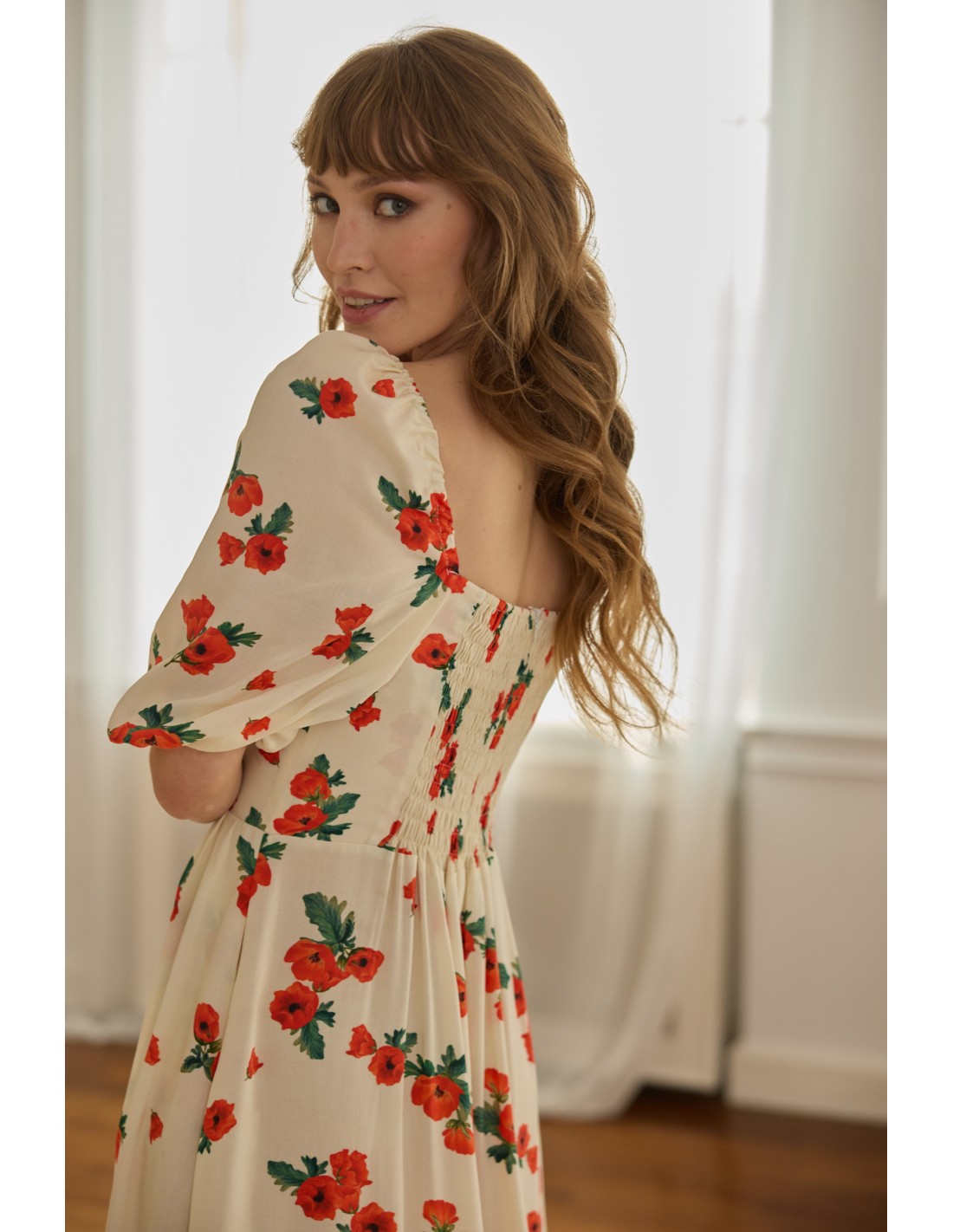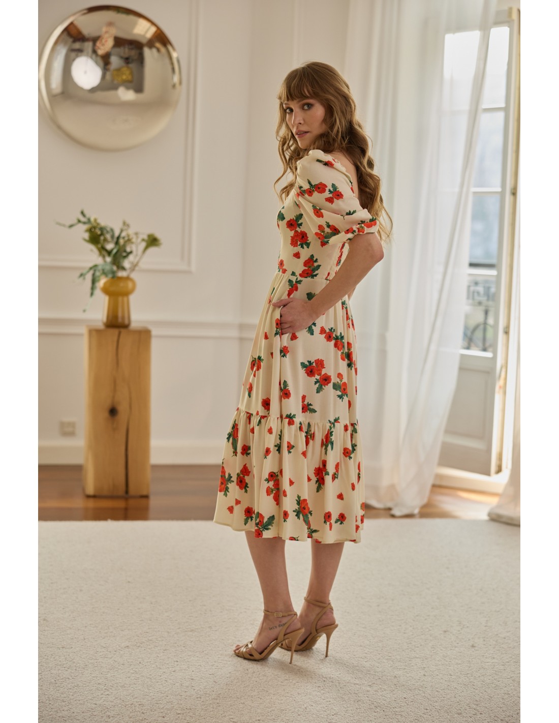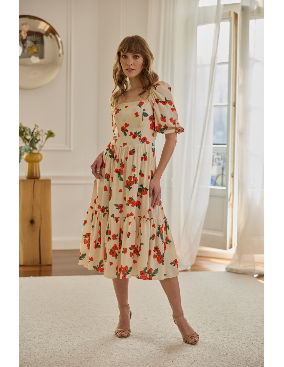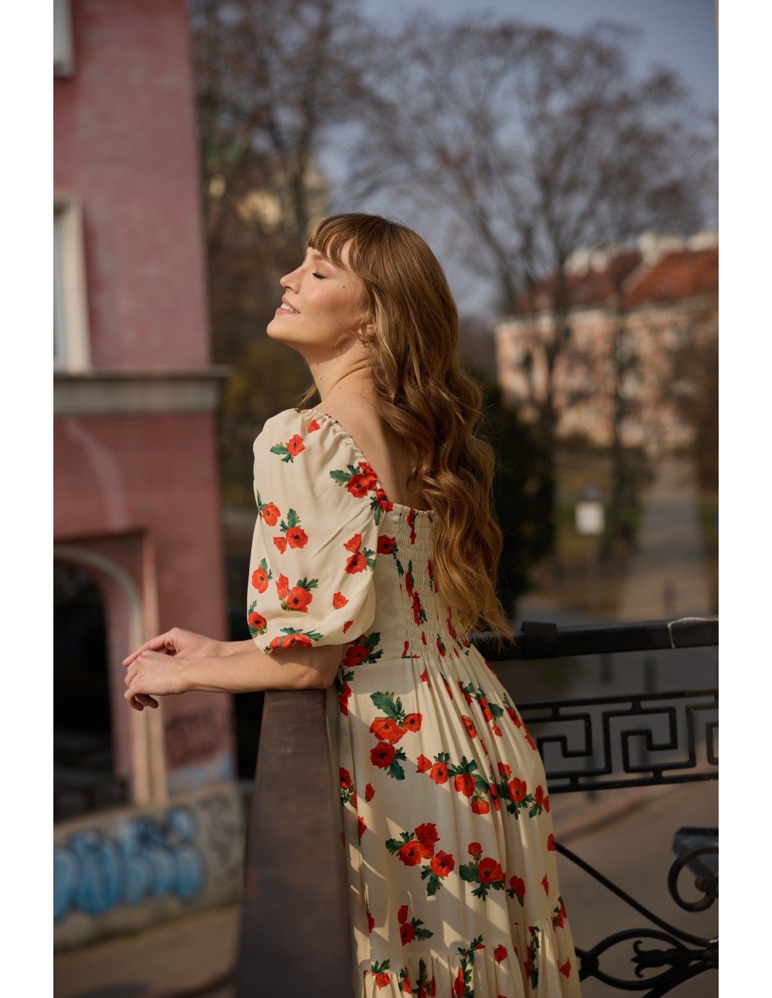 Każdy detal został dopracowany z myślą o romantycznym charakterze sukienki – subtelne wykończenia dodają lekkości, a długość za kolano sprawia, że jest zarówno szykowna, jak i wygodna.