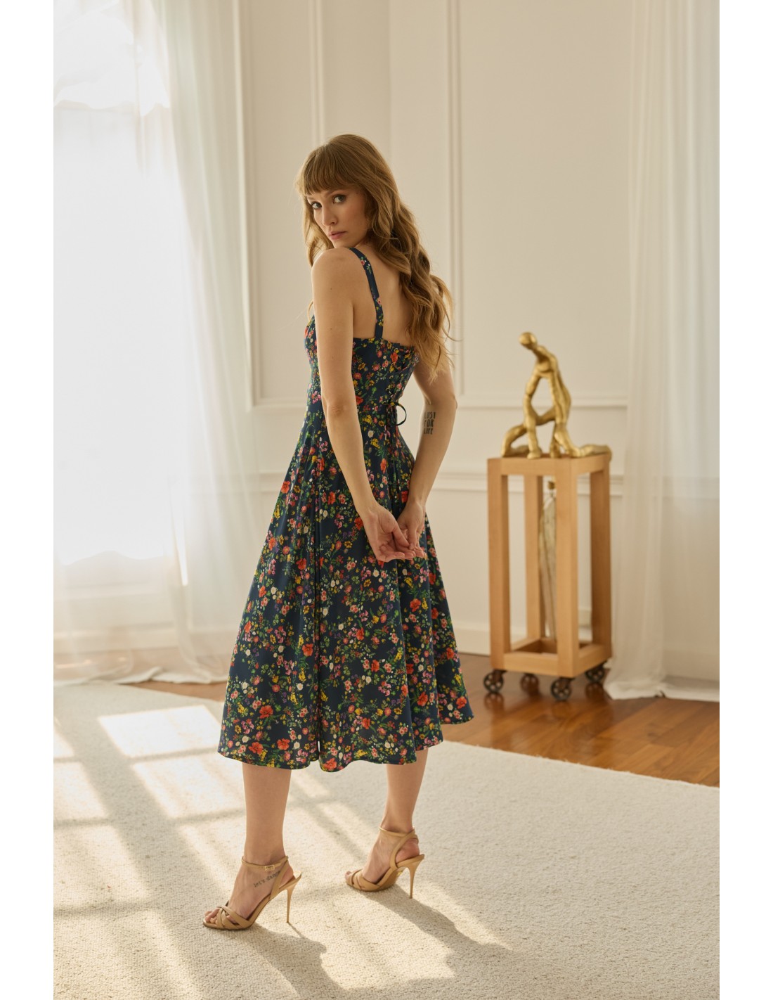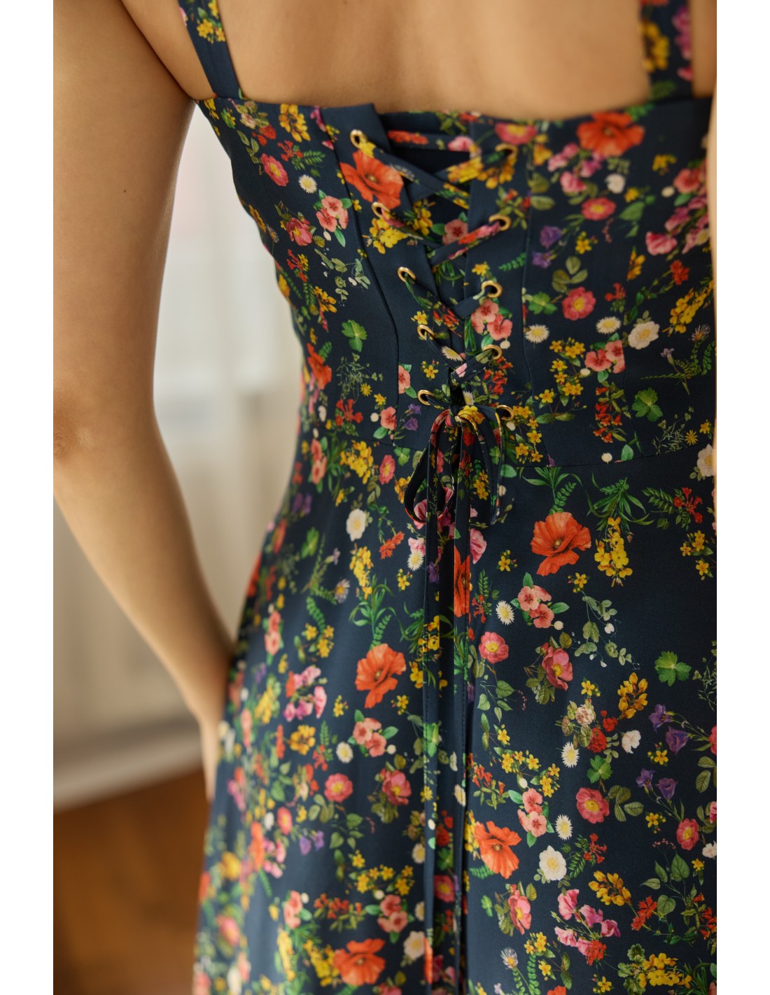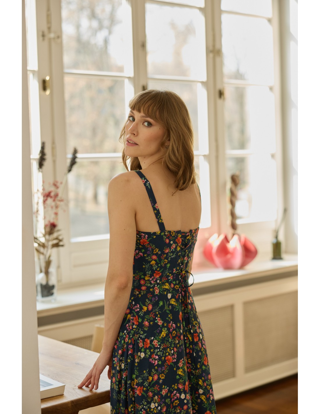 Lekka, zwiewna sukienka doda uroku tym momentom. Dziewczęcy krój połączyłyśmy z subtelnym wiązaniem na plecach, tworząc romantyczną i kobiecą całość. Całość dopełnia wysokogatunkowa, oddychająca tkanina, która delikatnie otula skórę.