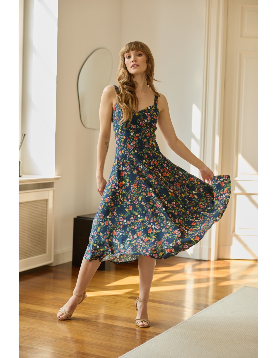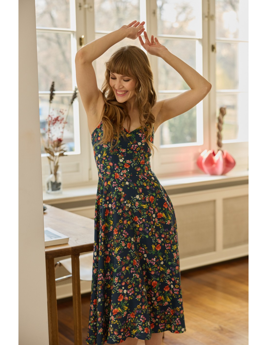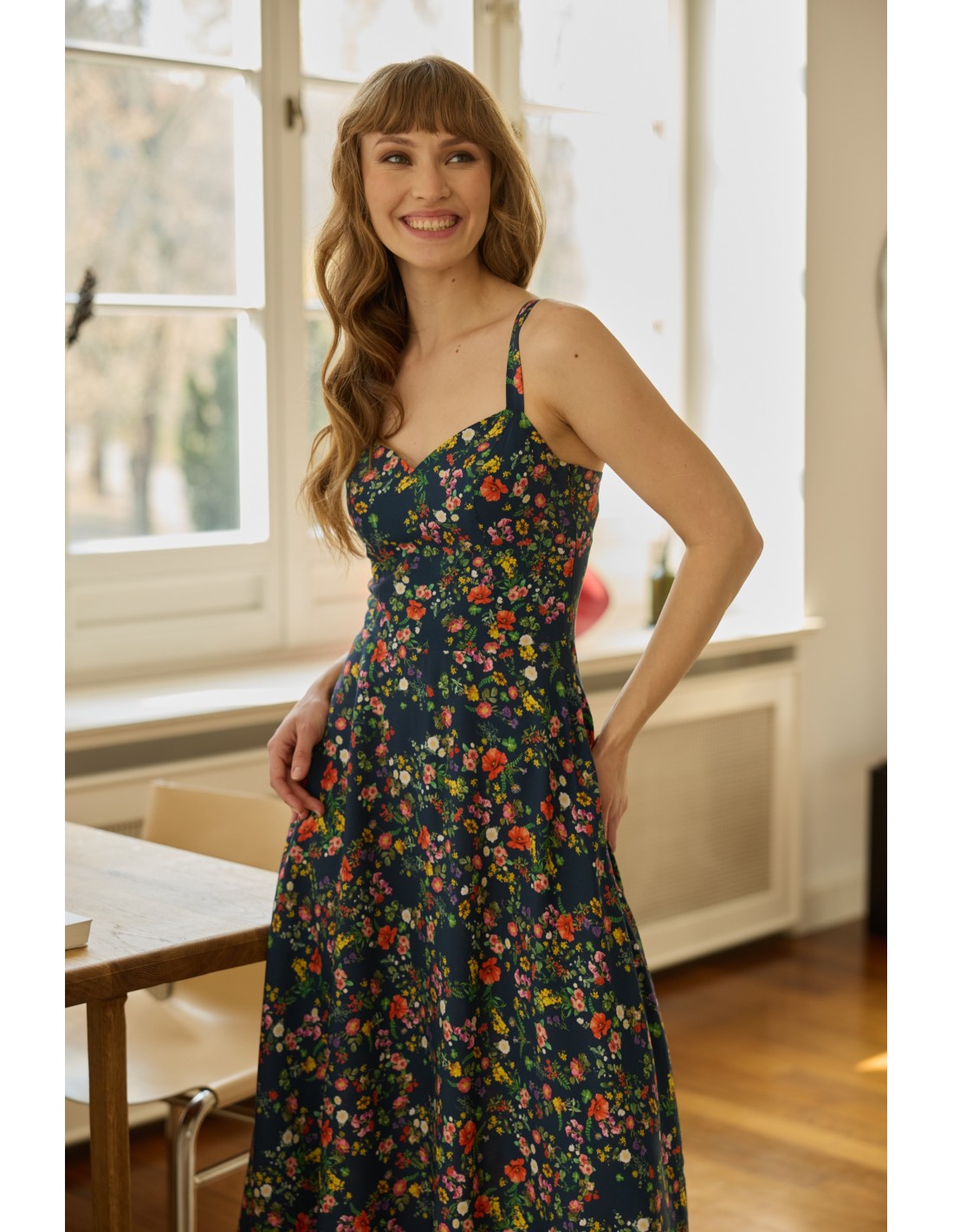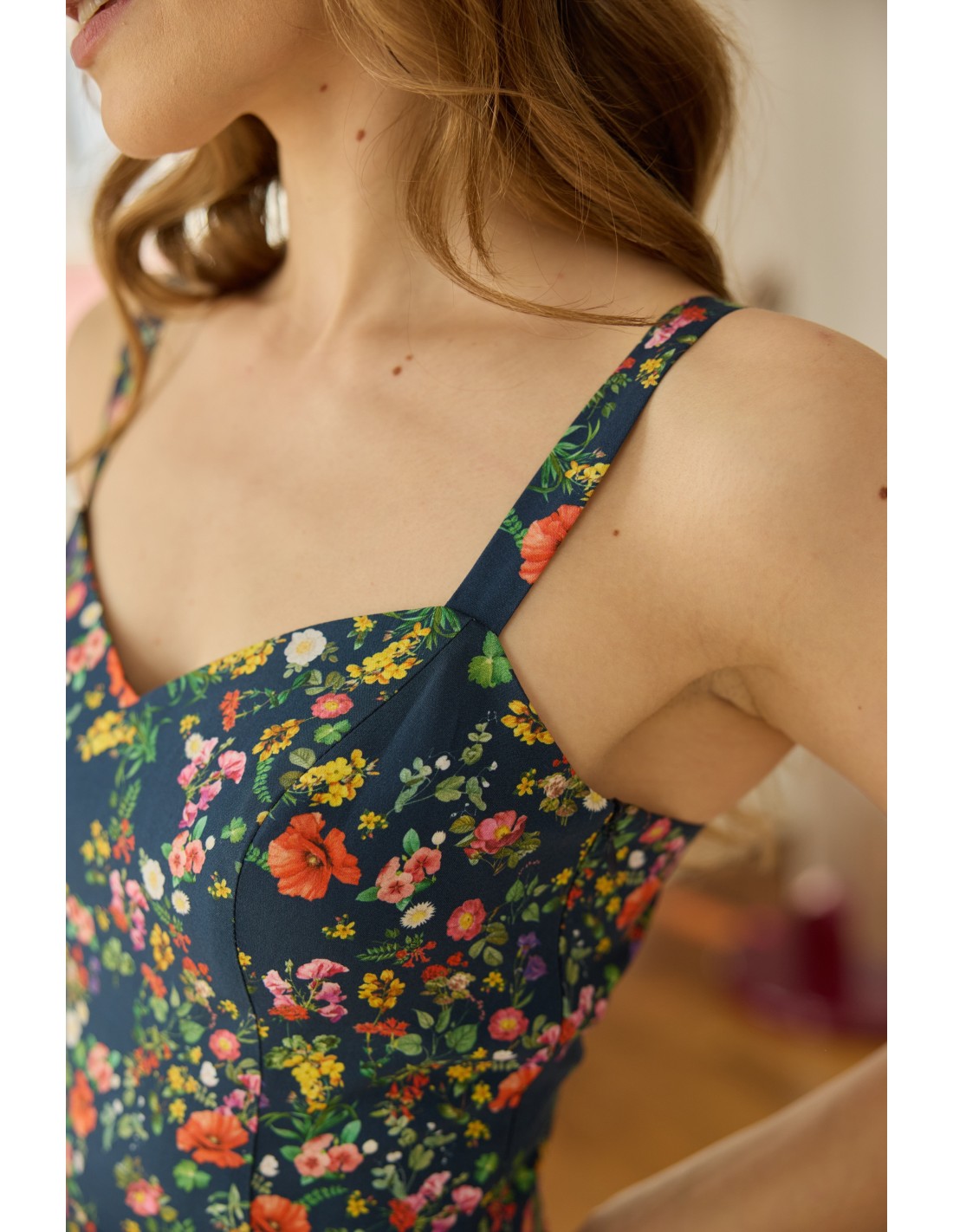 Lekka, zwiewna sukienka doda uroku tym momentom. Dziewczęcy krój połączyłyśmy z subtelnym wiązaniem na plecach, tworząc romantyczną i kobiecą całość. Całość dopełnia wysokogatunkowa, oddychająca tkanina, która delikatnie otula skórę.