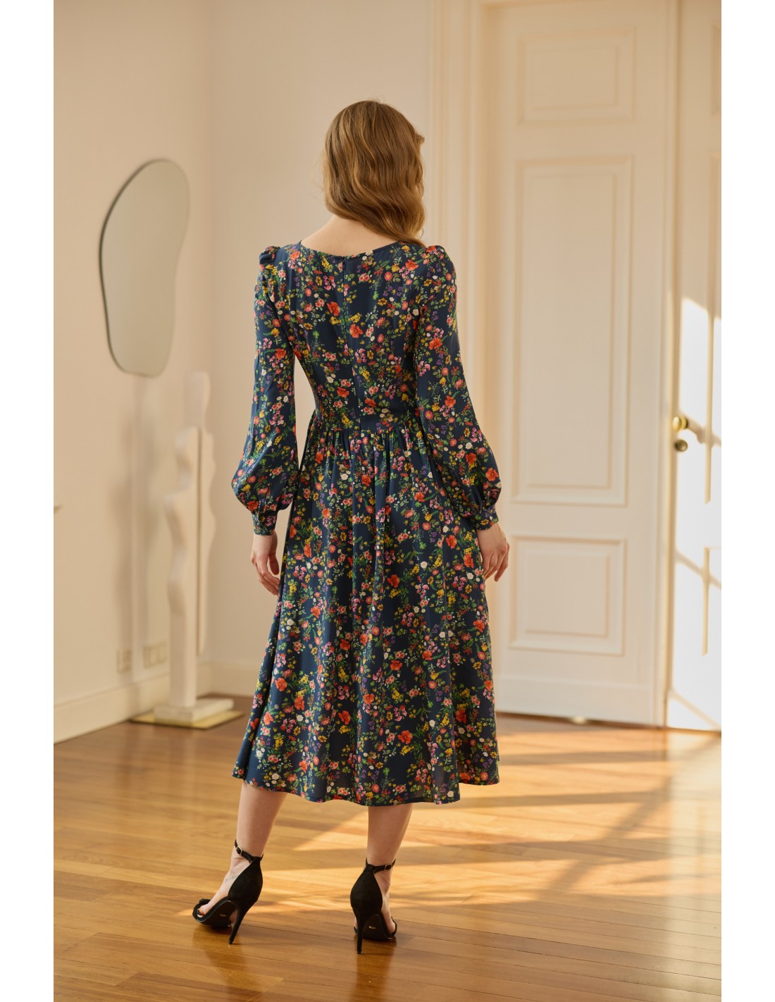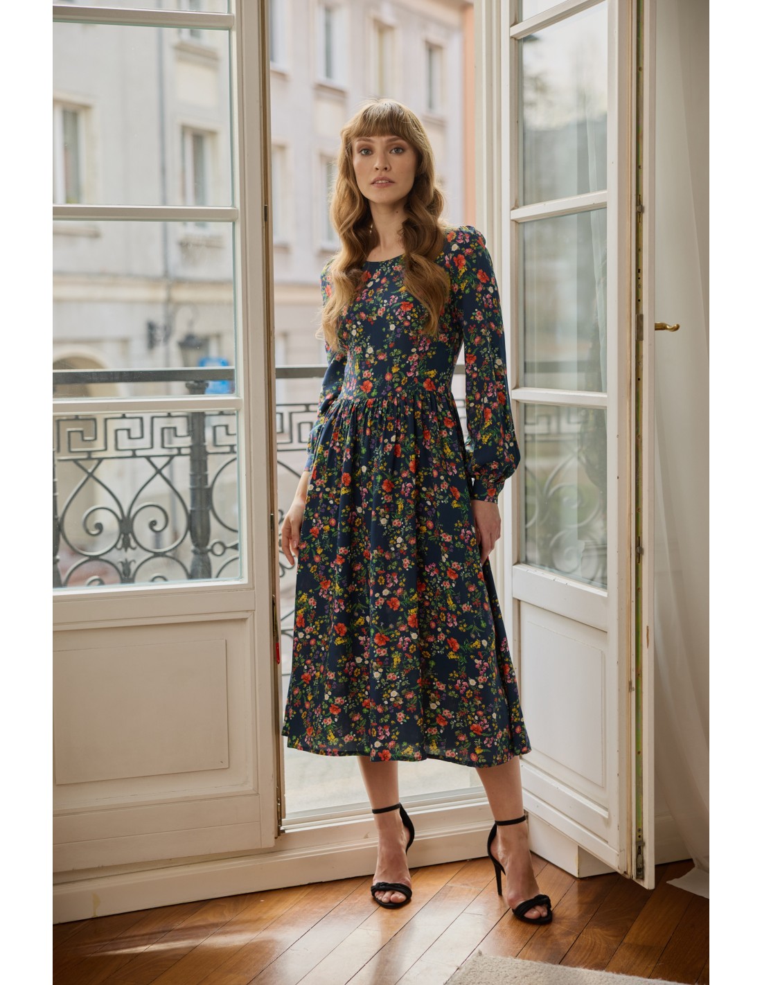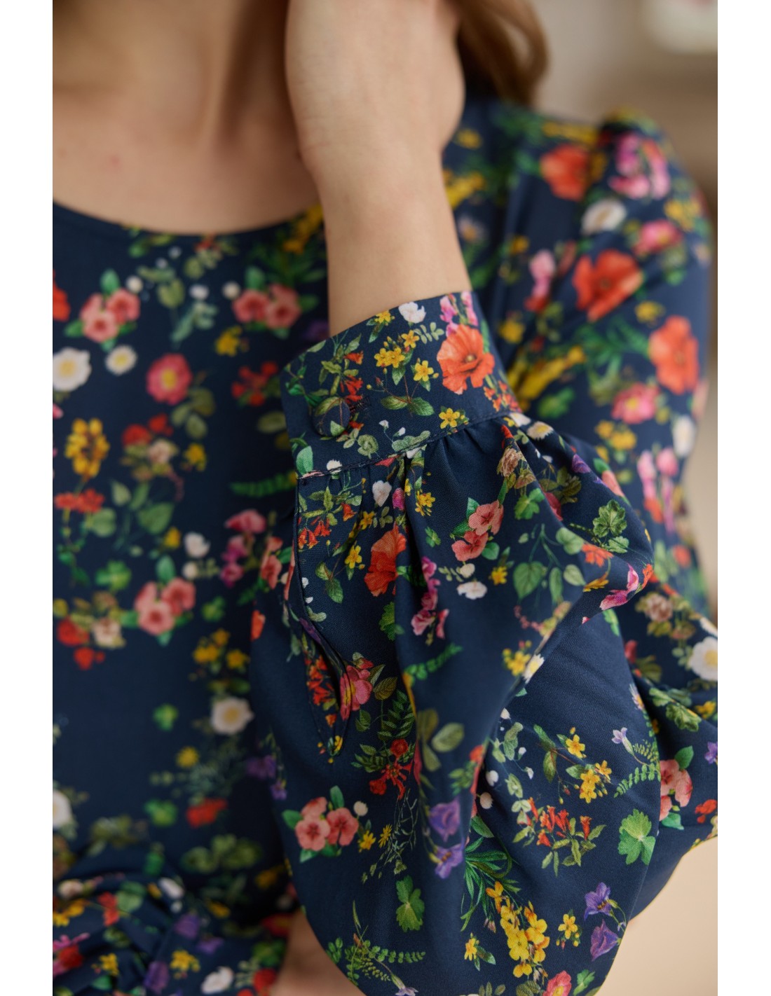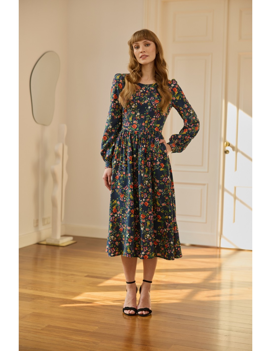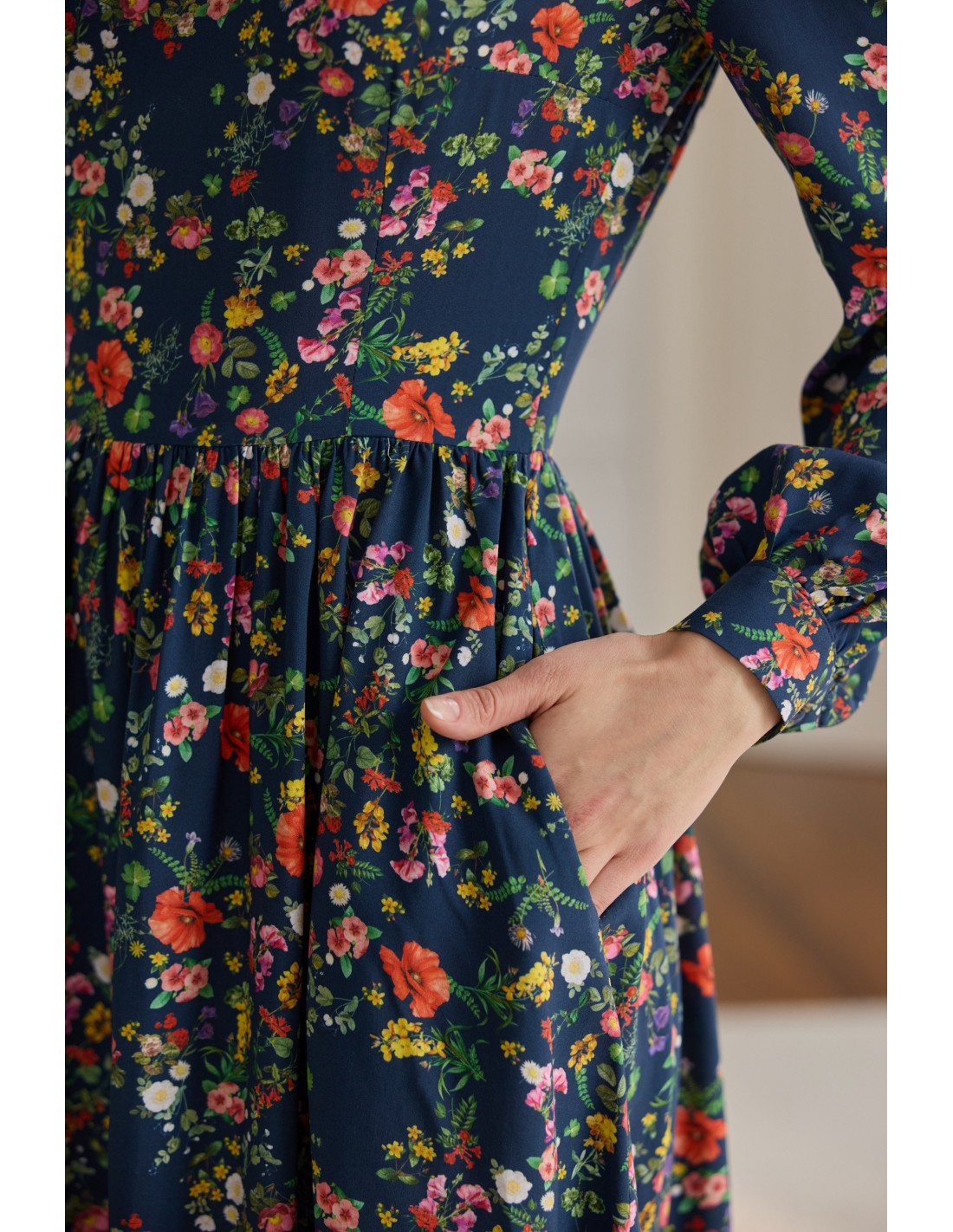 Ta sukienka doskonale układa się na każdej sylwetce, podkreślając jej atuty. Wyróżnia ją elegancja, autorski print i praktyczne kieszenie. Jak zawsze zadbaliśmy o każdy detal: z tyłu znajduje się wygodny suwak, mankiety ozdobione są oblekanymi guzikami, a delikatne bufki na ramionach subtelnie dopełniają całość. To idealny wybór dla osób ceniących niezawodną klasykę, które chcą wyglądać stylowo, ale jednocześnie czuć się komfortowo.