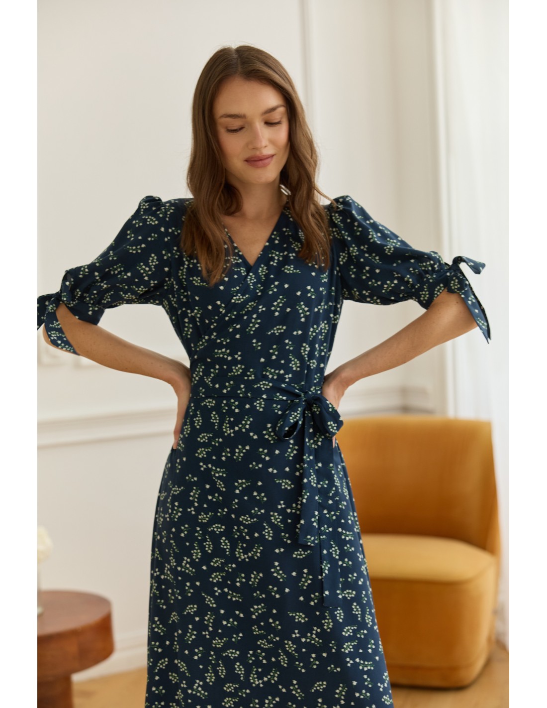 Autorski print konwalie na granatowym tle przyciąga spojrzenia - z daleka przypomina rozgwieżdżone niebo. To subtelny wzór, który nasze Klientki pokochały od pierwszego wejrzenia.