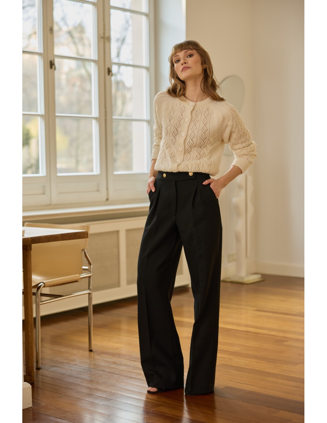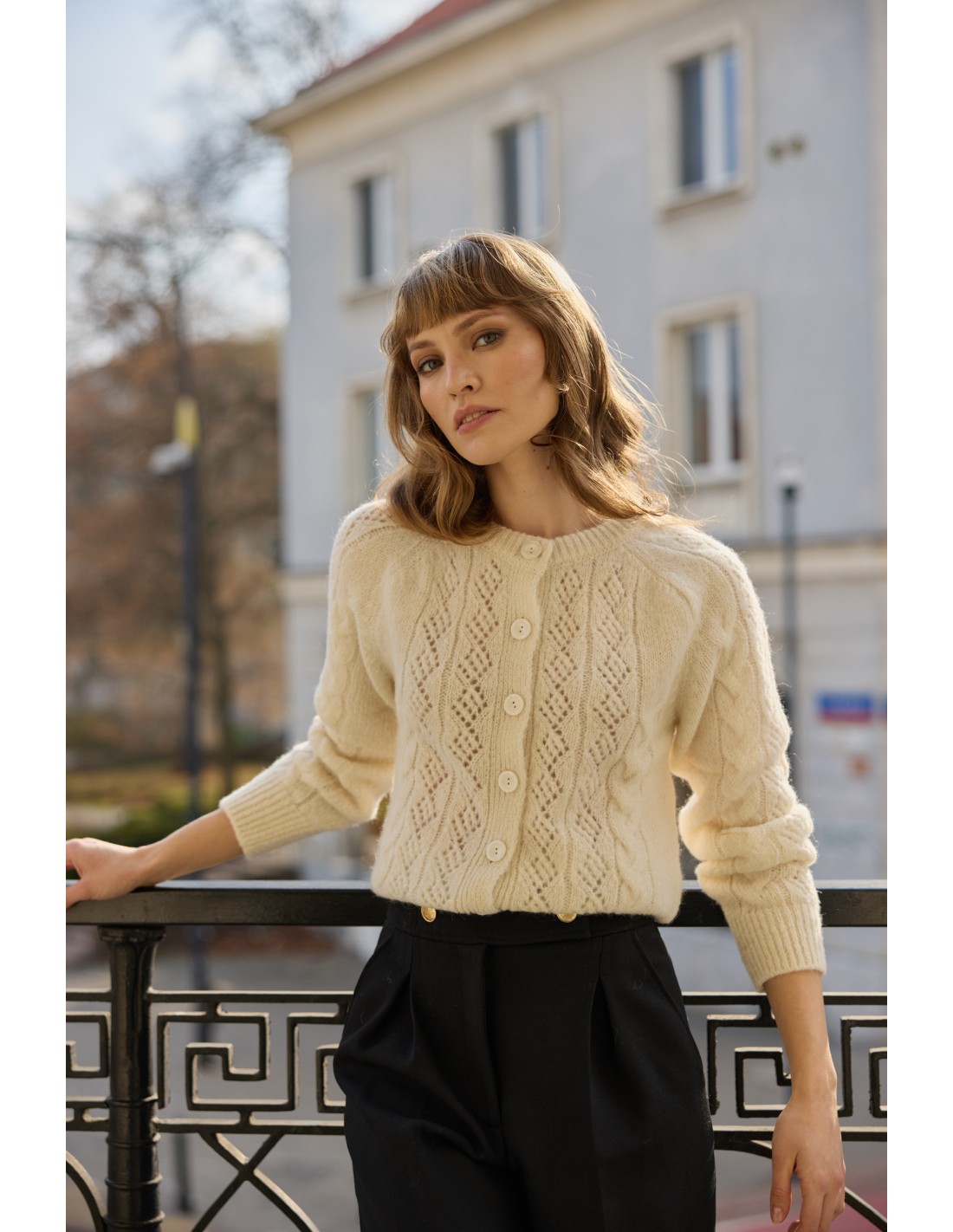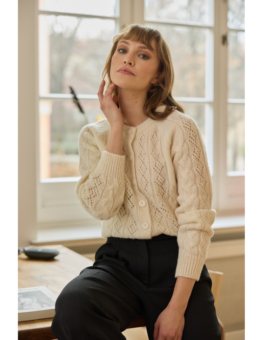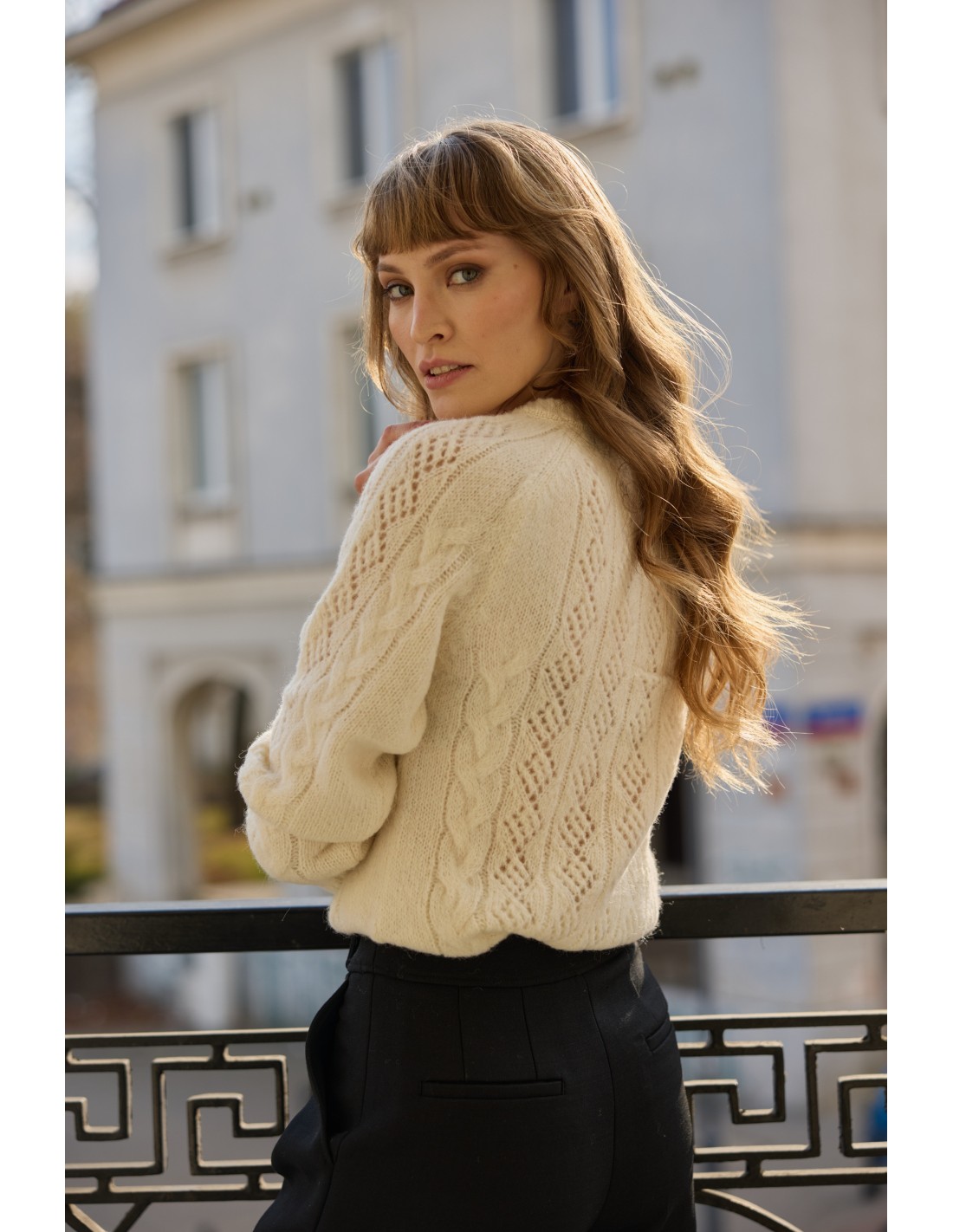 Sweter zachwyca subtelnym ażurowym wzorem, a ozdobne warkocze dodają mu prawdziwego zimowego charakteru. Świetnie sprawdzi się zarówno w miejskim biurze, jak i na górskiej wyprawie – urzeka detalami i daje poczucie wyjątkowego komfortu w każdych warunkach.